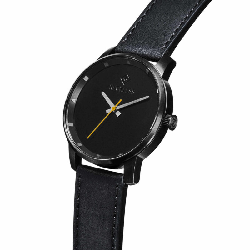 You should have the ability to adapt your watch according to how your style alternates. Recognizing this, we have included a simplistic mechanism that allows you to interchange the straps on your Reckless watch. Located on the band near the lug is a tiny lever that locks the band in place. To remove the strap, move the lock to dislodge the entire piece away from the lug. To put on a new strap, maneuver the new strap to the correct position within the lug, and lock it in place.
